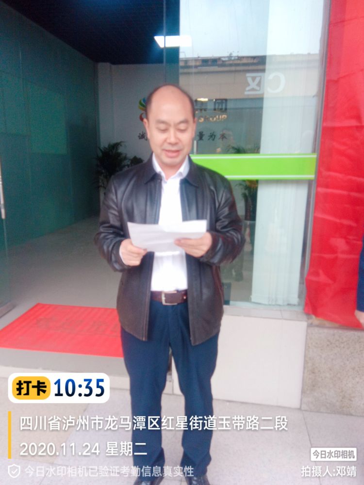 揭牌儀式前,項目經(jīng)理張明強(qiáng)致辭,回顧了從7月份開始接管后的重大事件,感謝所有員工的辛勞付出,他表示在今后的工作中,我們要更加努力,認(rèn)真工作,服從區(qū)委區(qū)政府、業(yè)主單位各級領(lǐng)導(dǎo)的調(diào)配,熟練掌握操作技巧,提高安全意識,把我們龍馬潭區(qū)的環(huán)衛(wèi)管理工作做得更好,用認(rèn)真工作的態(tài)度,用我們的實(shí)際行動,為營造優(yōu)美、整潔、和諧的龍馬潭區(qū)城區(qū)環(huán)境而努力,提升城市品位。為公司在四川的發(fā)展奠定堅實(shí)的基礎(chǔ)。